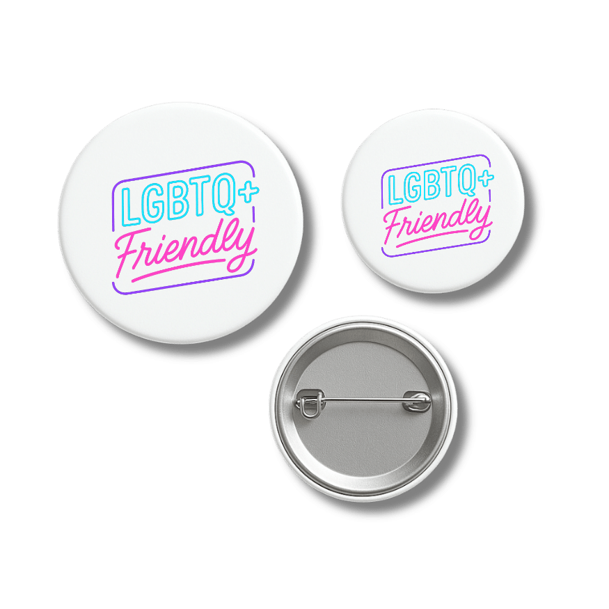 Spread love and inclusivity with this “LGBTQ+ Friendly” badge. Designed in vibrant neon blue and pink, this badge pin is the perfect accessory to showcase your allyship. The friendly and welcoming message makes it a great choice for anyone celebrating diversity. Pin it to your bag or jacket and let the world know you’re here for everyone. Ideal for pride events, casual outings, or as a heartwarming gift.